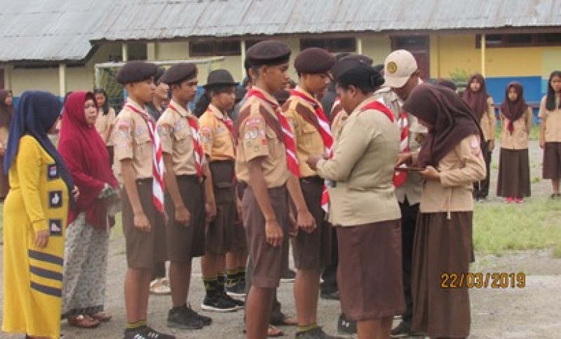 Gugus Depan 01.23-24 Pangkalan SMP Negeri 1 Wamena melantik sebelas (11) anggota Penggalang Ramu dan Terap, oleh Mabigus SMP Negeri 1 Wamena Yemima Kopeuw, S.Pd., M.Pd, Jumat (22/3)